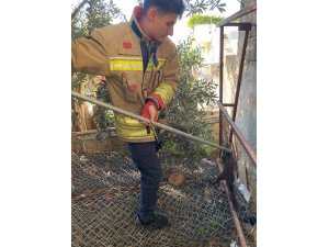 Hatay'ın İskenderun ilçesinde ava giden sansar, bir evin bahçesinde tellere takılarak mahsur kaldı.