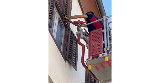 Antakya ilçesi Saray Caddesi'nde bir binanın penceresinde ipe dolanarak mahsur kalan kırlangıcı fark eden vatandaşlar durumu itfaiye ekiplerine bildirdi. İhbar üzerine bölgeye giden ekipler, sepetle kuşu kurtararak ayağına dolanan ipi kesti. Kırlangıç, kurtarma operasyonunun ardından doğaya bırakıldı.