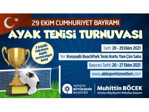 Büyükşehir Belediyesi Gençlik ve Spor Hizmetleri Dairesi Başkanlığı tarafından “29 Ekim Cumhuriyet Bayramı Ayak Tenisi Turnuvası’’ düzenleniyor. Turnuva, 28 Ekim Perşembe ve 29 Ekim Cuma günü, Konyaaltı Beachpark Antalya Büyükşehir Belediyesi Tenis Kortu yanında bulunan yeşil sahada gerçekleştirilecek.