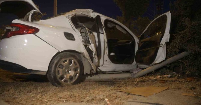 Hatay'da kontrolden çıkarak aydınlatma direğine çarpan otomobildeki 4 kişi yaralandı.