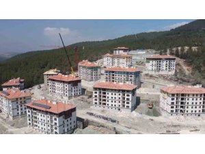Kahramanmaraş merkezli depremlerden etkilenen Osmaniye'nin Bahçe ilçesinde, Toplu Konut İdaresi Başkanlığı (TOKİ) tarafından yapımı devam eden deprem konutlarının kaba inşaatının yüzde 70'i tamamlandı.