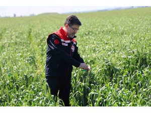 Konuşmanın ardından Bakan Yumaklı, süne zararlısına karşı buğday tarlasına böcek salımı yaptı.