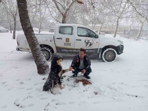 Balıkesir Büyükşehir Belediyesi soğuk ve karlı havalarda gıda bulmakta sıkıntı çeken sokak hayvanlarına yönelik besleme çalışmalarına aralıksız devam ediyor.