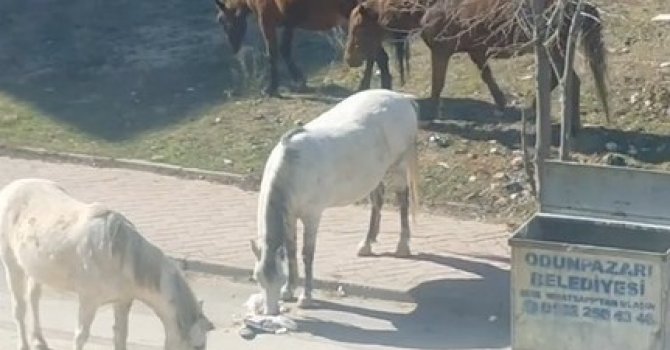Eskişehir'de başıboş şekilde gezen atlar, çöpten çıkarttıkları atıklarla hem çevre kirliliğine hem de rahatsızlığa neden oluyor.