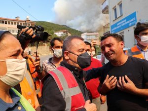 Manavgat’ta 28 Temmuz'da saat 12.00 sıralarında 4 farklı noktada başlayan orman yangınları, altıncı gününde Gündoğmuş ilçesini sardı. Alevlerin ilçe merkezine yaklaşması üzerine 2 bin 100 nüfuslu Gündoğmuş ilçesinin tahliye edilmesine karar verildi. Büyükşehir Belediye Başkanı Muhittin Böcek de yangının sardığı Gündoğmuş ilçesine gitti. Başkan Muhittin Böcek de Antalya Büyükşehir Belediyesi’nin ulaşabildiği yere kadar gidip yangını söndürmek için mücadele edeceklerini belirterek, “Yangın Gündoğmuş merkezine geldi. Yanıyoruz. Gündoğmuş’a uçak gönderin. Helikopter gönderin. Yetkililere sesleniyorum. Yanıyor insanlar” çağrısında bulundu. Başkan Böcek yangından canlarını kurtarmak için tahliye edilen vatandaşlara destek olmaya çalışıyor. Hava desteğinin yetersiz olduğu konuda Başkan Böcek’e dertlerini anlatan Gündoğmuş halkı “Bu böyle olmamalıydı. Canımız gidiyor, mallarımız gidiyor. Ağaçlarımız yanıyor. Bir an önce söndürün bu yangını” diyerek gözyaşı döküyor.