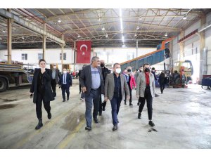 Başkan Böcek, Kırsal ve Tarımsal Hizmetler Daire Başkanlıklarının makine ve araç parkını da gezerek, personel ile sohbet etti.