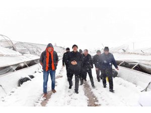 Kahramanmaraş Büyükşehir Belediye Başkanı Hayrettin Güngör, şehirde etkili olan kar yağışları sebebiyle seraları zarar gören üreticilerle bir araya geldi.