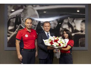 Şube müdürlerinin de yer aldığı ziyarette, itfaiye personeli Başkan Seçer'e çiçek takdim etti.
