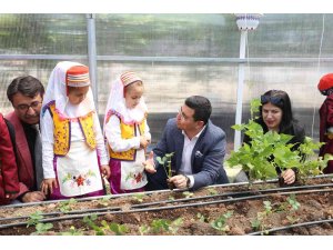 Emine Fatma Çevik Anaokulu bahçesine kurulan seranın açılışına katılan Kepez Belediye Başkanı Hakan Tütüncü, öğrencilerle çilek ekti.