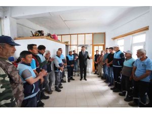 Başkan Ulutaş, bayramlaşma sırasında personeline bayram şekeri ve kolonya verdi.