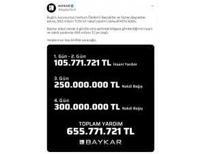 Baykar, deprem bölgesinde ilk günden itibaren toplam 655 milyon 771 bin 721 TL'lik yardım gerçekleştirildi.