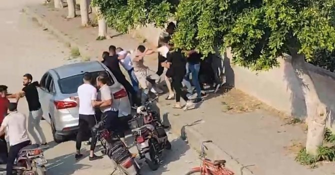 Hatay'da iki grup arasında sokak ortasında çıkan kavgada yumruklar ve tekmeler havada uçuştu. Adeta savaş ortamına dönen kavga anbean kameraya yansıdı.