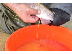 Alabalık tesisi sahibi Halil Arslan, "Alabalık sağım sezonuna Kasım ayında başladıklarını ve Ocak ayının sonuna kadar devam edeceğini söyledi. Senede bir defa balıklardan havyar alıp yavrularını ürettiğini söyleyen Arslan, "Burada alabalık yetiştiriyoruz. Ürettiğimiz balıkları 5 gram ağırlığına geldikten sonra yavru olarak satışını yapıyoruz" dedi.