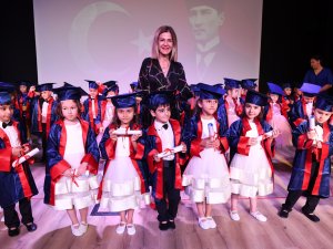 Konyaaltı Belediyesi Uncalı Çocuk Kreyi ve Gündüz Bakımevinde mezuniyet coşkusu yaşayan minikler, karnelerini Konyaaltı Belediyesi Başkan Yardımcısı Tuğba Erke Bostan'ın elinden aldı. Konyaaltı Belediyesi Nazım Hikmet Fuar ve Kongre Merkezinde gerçekleştirilen mezuniyet töreni minik öğrencilerin birbirinden güzel dans ve halk oyunları gösterileriyle başladı. Çocukları ve velileri bu özel günlerinde yalnız bırakmayan Tuğba Erke Bostan, miniklerin mezuniyet sevincine ortak oldu. 6 yaş grubu öğrencilerin heyecanını paylaşmaktan duyduğu memnuniyeti dile getiren Bostan, “Uncalı kreşimizin yılsonu gösterisinde bir araya geldiğimiz bu günde en kıymetli varlıklarımız olan çocuklarınızı bizlere emanet ettiğiniz için siz sayın velilerimize çok teşekkür ediyorum. Bu kıymetli yavruları kendi yavrularından hiç ayırmayan gözünün önünden esirgemeyen kıymetli öğretmenlerimize de çok teşekkür ediyorum" dedi