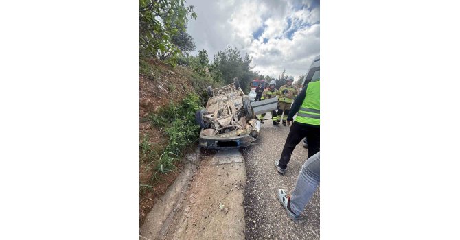 Hatay'da sürücüsünün kontrolünü kaybetmesiyle takla atarak, ters dönen otomobildeki 2 kişi yaralandı.
