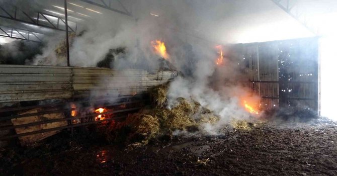 Söndürmeye karşın içten yanmaya devam eden saman balyaları ise, iş makineleri yardımıyla besihanenin dışına çıkartıldı. Yangında, besihanede saman balyaları ve yemlerin bulunduğu bölümde bulunan ve hiç kullanılmamış 2022 model traktör tamamen yanarak kullanılamaz hale gelirken, 3 bin balya saman, 100 çuval yem, 150 çuval buğday-Arpa karışımı, buzdolabı ve jeneratör yandı.