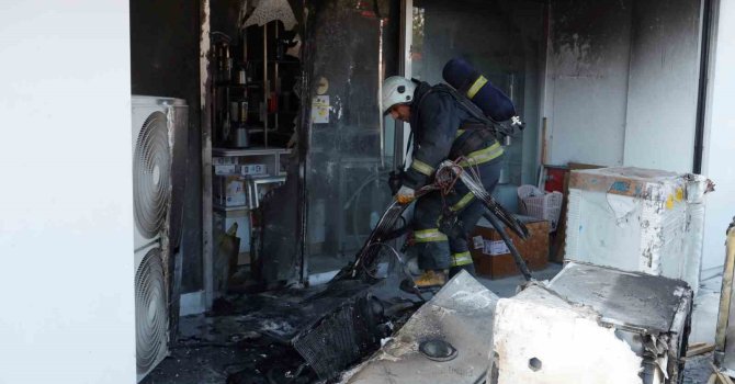 Antalya'da bir beyaz eşya mağazasında klima dış ünitesinden çıkan yangında maddi hasar meydana geldi.