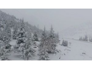 Kahramanmaraş'ın yüksek kesimlerde iki gün etkili olan kar yağışı sonrası Göksun ilçesi Kurucuova mevkii Püren Geçidi beyaza büründü. Ormanlık dağlarıyla bilinen bölge kar yağışı sonrası beyaz gelinliğini giyerken, ortaya çıkan eşsiz manzara kartpostallık görüntülere sahne oldu.