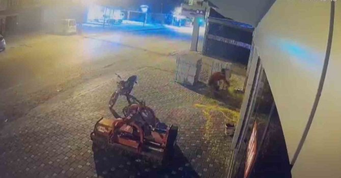 Hatay'ın Erzin ilçesinde BİM şubesine motosikletle gelerek boyalı saldırıda bulunan şahsın o anları güvenlik kamerasına yansıdı.