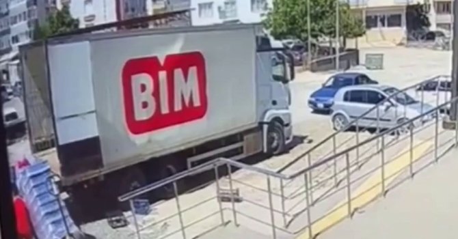 Osmaniye'de BİM market personelinin yük ile kamyon arasında kalarak yaralandığı feci kaza kameraya yansıdı.