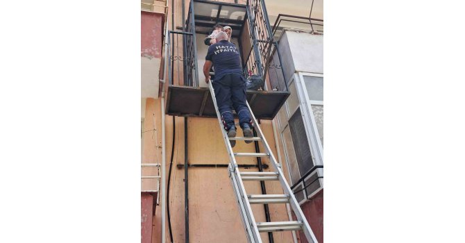 Hatay'ın Samandağ ilçesinde bir binanın dış cephesindeki asansörde mahsur kalan anne ve kız çocuğunu itfaiye ekipleri kurtardı.
