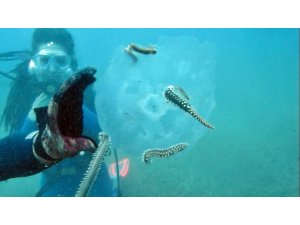 Geçiş döneminde Akdeniz kıyılarına vuran Kızıldeniz göçmeni denizanası sürüleri, deniz çıyanlarına yem olurken görüntülendi. Daha önce sahil şeridinde yüzlercesi kıyıya vurmuş görüntüsüyle vatandaşları şaşırtan denizanaları, bu sefer sualtında deniz çıyanının saldırısına uğrarken sualtı kamerasıyla görüntülendi.