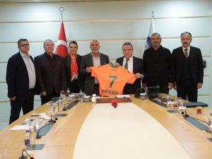 Hasan Çavuşoğlu da Başkan Böcek’e marş için ve Alanyaspor’a destekleri için teşekkür etti. Yarın oynanacak Aytemiz Alanyaspor-Beşiktaş maçında stadyumda marşı çalacaklarını söyleyen Çavuşoğlu, tüm takım adına 7 numaralı imzalı formayı Başkan Böcek’e hediye etti. Haber Merkezi