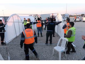 Bodrum Belediyesi tarafından İskenderun ve Arsuz arasında bulunan Expo merkezinin yanındaki alanda bin kişiye hizmet verecek çadır kent ve aş evinin kurulumu tamamlandı. "Bodrum Belediyesi Hatay-Arsuz Dostluk Kenti"nde koordinasyon ise bizzat Bodrum Belediye Başkanı Ahmet Aras tarafından yürütülüyor.