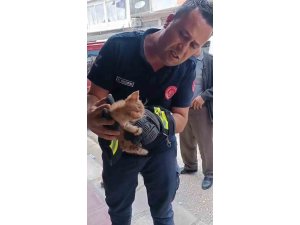 Hatay'ın Yayladağı ilçesinde boruya sıkışan yavru kedi itfaiye ekipleri tarafından kurtarıldı.