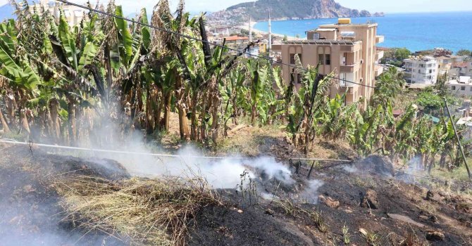 Antalya'da boş arazide başlayan yangın muz ve yenidünya bahçelerine sıçramadan söndürüldü.