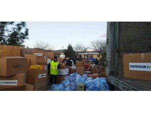 Yardım tırlarında Bozüyük Belediyesi tarafından başlatılan Afet Yardım Kampanyası kapsamında toplanan kullanılmamış çadır, battaniye, ısıtıcı, kışlık kıyafet, bebek bezi ve maması, ped, kuru gıda, ekmek, yiyecek malzemeleri ve su gibi yardım malzemeleri yer alıyor.
