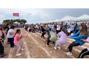 Antalya'da düzenlenen şenlikte anneler halat çekme yarışında yarıştı, çocukları ise tezahüratta bulunarak annelerini destekledi.