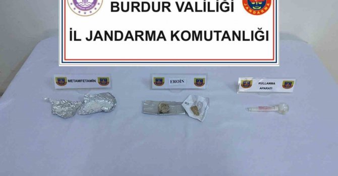 Burdur İl Jandarma Komutanlığı unsurları tarafından Bucak Cumhuriyet Başsavcılığı ile koordineli olarak yürütülen çalışmada, elde edilen bilgiler çerçevesinde yapılan fiziki takip sonucunda Burdur-Antalya D-650 Karayolu üzerinde durdurulan araç içerisinde bulunan H.D. ve E.S.D. isimli şahısların üzerlerinde ve araçlarında yapılan adli arama sonucunda 22 gram metamfetamin, 12 gram eroin ve 1 adet uyuşturucu madde kullanma aparatı ele geçirildi.