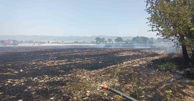 Yangında yaklaşık 10 dönüm anız alan zarar görürken, 3 büyük saman balyası ile 15 adet sulama borusunun da kullanılamaz hale geldiği bildirildi.