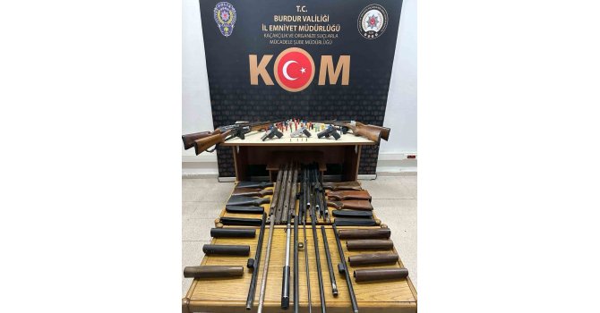 Burdur İl Emniyet Müdürlüğü ekipleri tarafından H.T., A.T. ve O.T. isimli şahısların ikametlerinde 4 Nisan günü yapılan aramalarda; 3 adet ruhsatsız tabanca ve şarjör, 4 adet ruhsatsız tüfek, 4 adet 9x19 mm tabanca fişeği, 41 adet kartuş, 95 parça tüfek mekanizmasına ait muhtelif parçalar ele geçirildi.