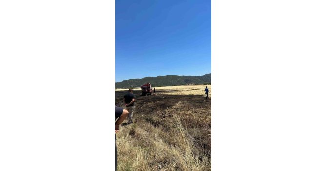 Burdur'un Çeltikçi ilçesinde hasat yapılırken biçerdöverden çıkan kıvılcımların alev alması sonucu 1 dekarlık tarım arazisi yandı.