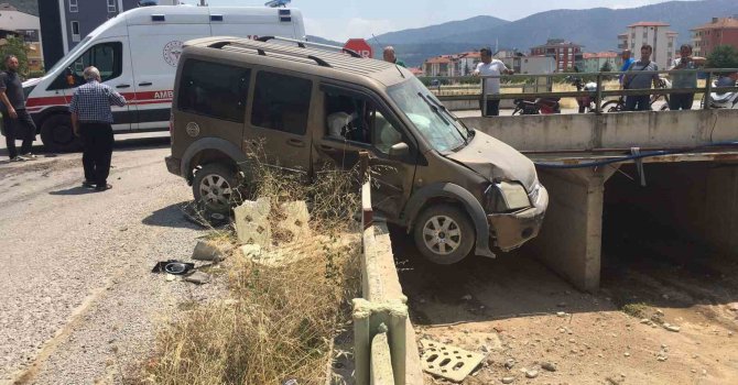 Burdur'un Bucak ilçesinde otomobil ile çarpışan hafif ticari aracın köprüde asılı kalması sonucu itfaiye tarafından kurtarılan 3 yaralı hastaneye kaldırıldı.