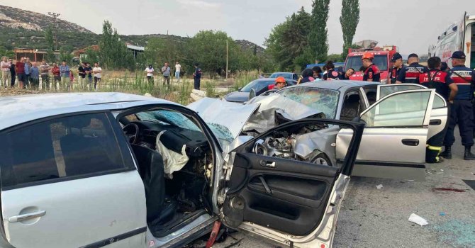 Burdur-Yeşilova yolunda iki otomobilin kafa kafaya çarpıştığı kazada ilk belirlemelere göre 1 kişi hayatını kaybetti, 9 kişi yaralandı.