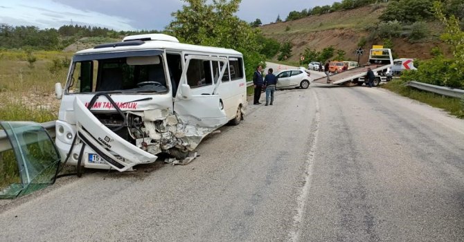 Burdur'un Karamanlı ilçesinde işçi servisi ile otomobilin çarpışması sonucu meydana gelen kazada 13 kişi yaralandı.