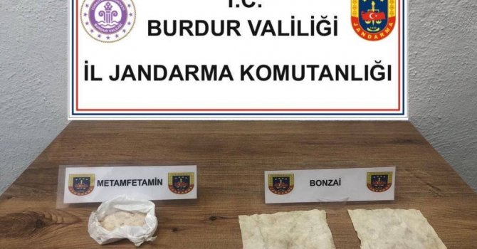 Burdur İl Jandarma Komutanlığı ekipleri tarafından Bucak Cumhuriyet Başsavcılığı koordinesinde yapılan çalışmalar sonucu 05.10.2023 tarihinde Burdur'un Bucak ilçesi mülki sınırları içerisinde M.B. isimli şahsın üzerinde ve kullandığı araçta yapılan adli aramada 20 gram metamfetamin, 80 içimlik bonzai maddesi ele geçirildi.