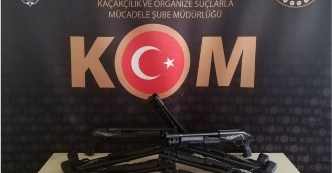 Yapılan aramada, 12 adet menşei ve seri numarası belli olmayan pompalı olarak tabir edilen silah ele geçirilerek, işyeri sahibi G.K. isimli şahsa "Kaçakçılıkla Mücadele Kanununa Muhalefet" suçundan işlem yapıldı.