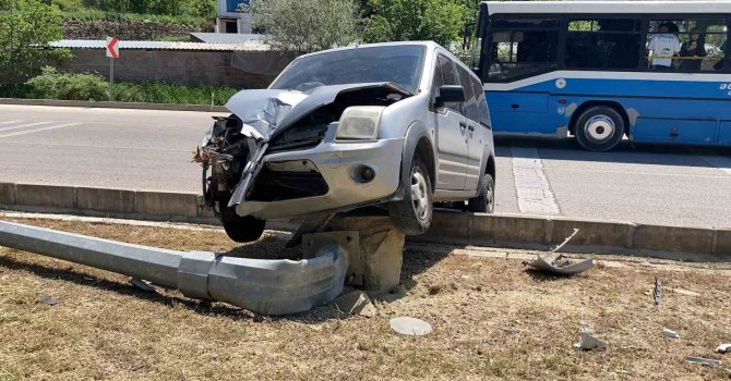 Burdur-Antalya karayolunda seyir halindeyken sürücünün direksiyon hakimiyetini kaybetmesi sonucu refüje çıkarak elektrik direğini deviren ticari araç sürücüsü yaralandı.