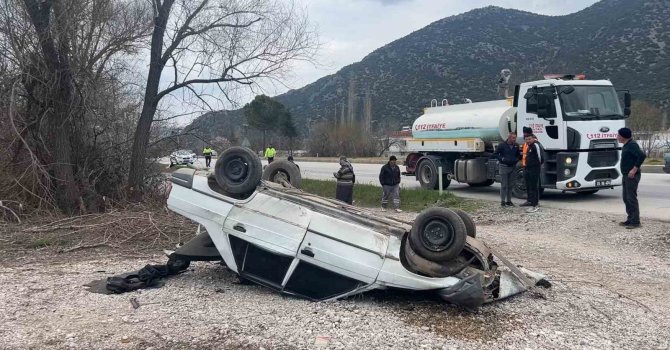 Burdur-Antalya karayolunda seyir halindeyken lastiği patlayan otomobil kontrolden çıkarak takla attı, kazada 1 kişi yaralandı.