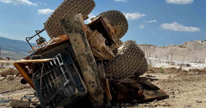 Burdur'da mermer ocağında arıza yapan kepçeyi tamir ederken kepçenin kayıp devrilmesi sonucu altında kalan servis ustası hayatını kaybetti, operatör ise yaralandı.