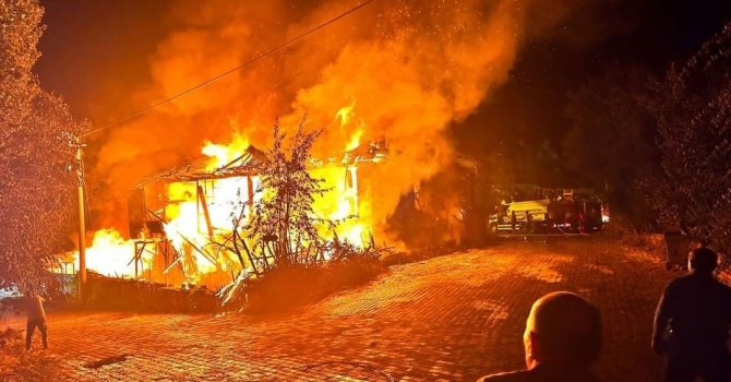 Burdur'un Altınyayla ilçesinde kullanılmayan bir evde çıkan yangında alevler geceyi aydınlattı, boş ev yanarak küle döndü.