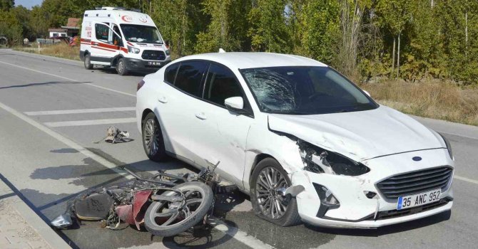 Burdur'un Gölhisar ilçesinde otomobil ile çarpışan motosiklet sürücüsü kaldırıldığı hastanede hayatını kaybetti. Kaza anı saniye saniye güvenlik kamerasına yansıdı.