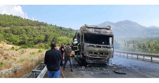 Olay, saat 16.00 sıralarında Burdur'un Çeltikçi ilçesi Tekkeköy mevkisi D-650 kara yolu üzerinde meydana geldi. Edinilen bilgilere göre, Remzi Y. (49) idaresindeki 06 CNU 487 plakalı tırın motor bölümünden bir anda dumanlar yükselmeye başladı. Alevleri fark eden sürücü, aracı emniyet şeridine çekerek itfaiyeyi aradı. İhbar üzerine olay yerine gelen itfaiye ekipleri, tırdaki yangına müdahale ederek alevleri kontrol altına aldı. Tamamen yanan tır kullanılamaz hale gelirken otluk alan sıçrayan alevler de itfaiye ekiplerince kısa sürede söndürüldü. Olayla ilgili inceleme başlatıldı.