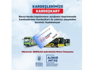 Bursa Büyükşehir Belediyesi, depremin yıkıcı etkiye yol açtığı 10 ilden Bursa'ya gelen deprem mağdurlarını şehir içi hatlarda ücretsiz taşıyacak. Uygulamaya geçen "Kardeş Kart" uygulaması ile depremzedeler, günlük 6 binişten ücretsiz yararlanacak.