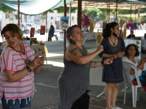 Aralarında Antalya’nın simgesi falezlerde yer alan parkların da bulunduğu birçok nokta, her cuma saat 17.00’den 18.30’a birer açık hava sahnesine dönüşürken etkinliklerin bu haftaki noktalarından biri pazar yeri oldu. Müzik Sokakta sahnesi, Muratpaşa Belediyesi’nce geçen yıl ağustos ayında, kadınların evlerinde, bir araya geldikleri kooperatiflerde yaptığı çantaları, takıları, kapı süslerini ve daha birçok hediyelik eşyayı doğrudan tüketiciyle buluşturmalarını sağlamak için açtığı Üreten Eller Pazarı’nda kuruldu.