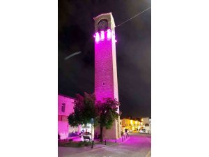 Bu kapsamda Adana'daki Büyük Saat Kulesi, akşam saatlerinde pembeye büründü.
